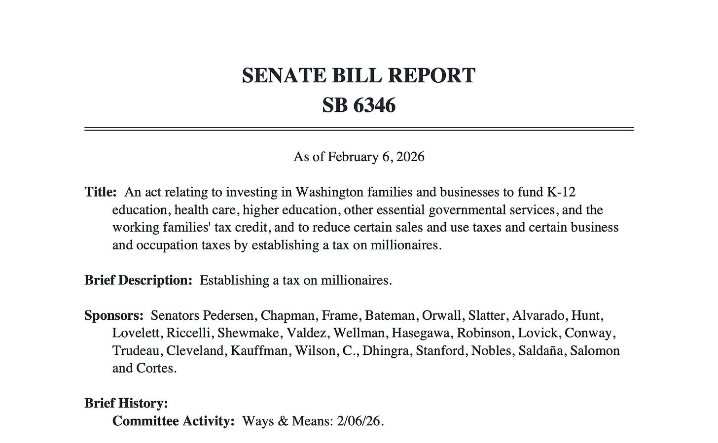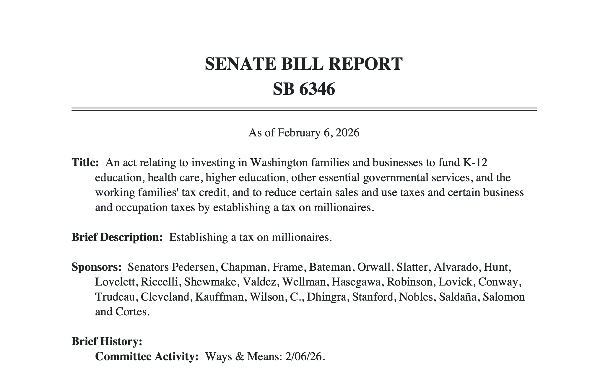 From the House Bill report for ESSB 6346: